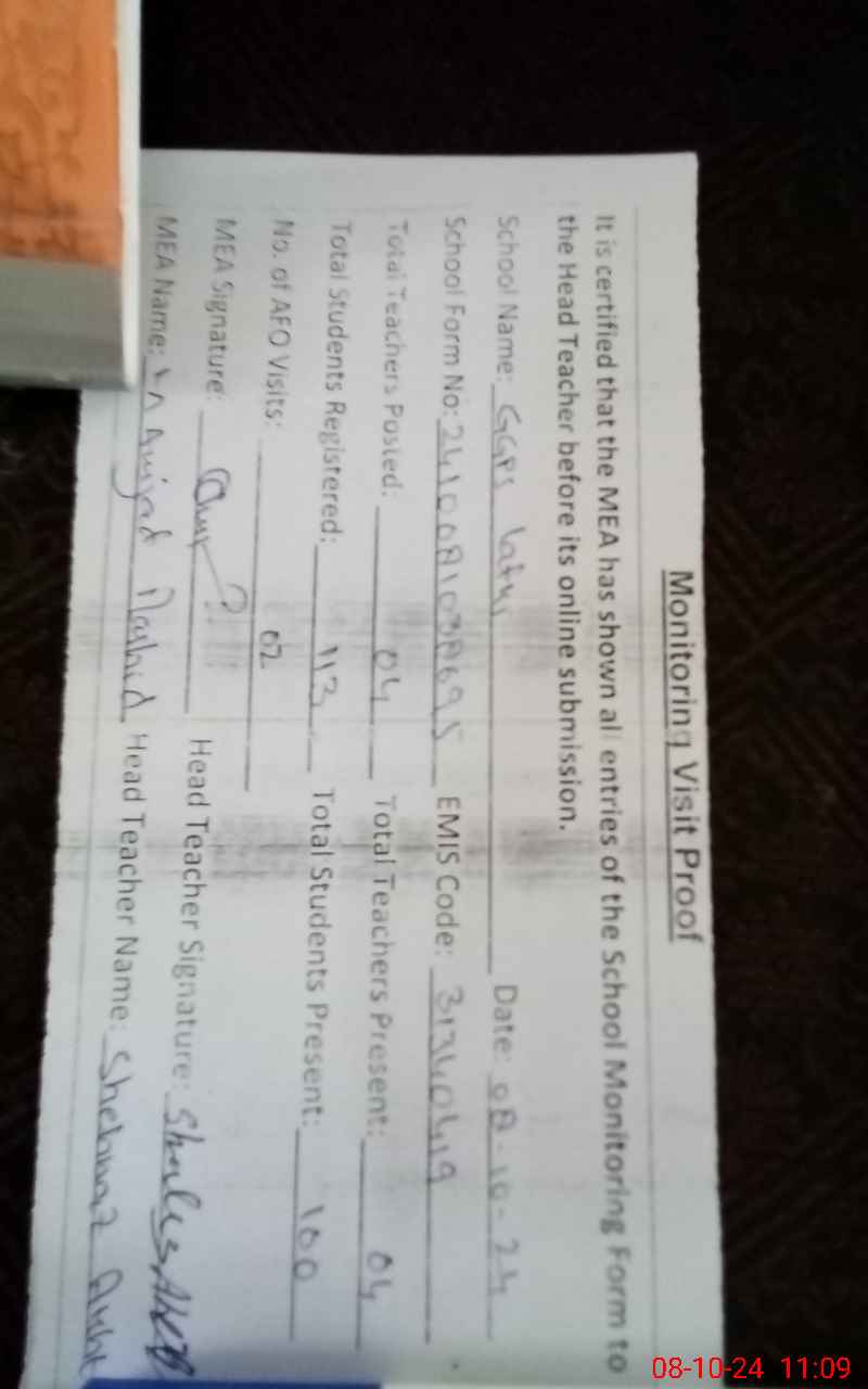 | EMIS Code: 31340419 | Name of School: GGPS LATKI | |||