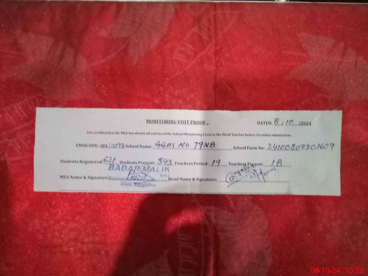 | EMIS Code: 38420094 | Name of School: GGHS CHAK NO.79 NB | |||