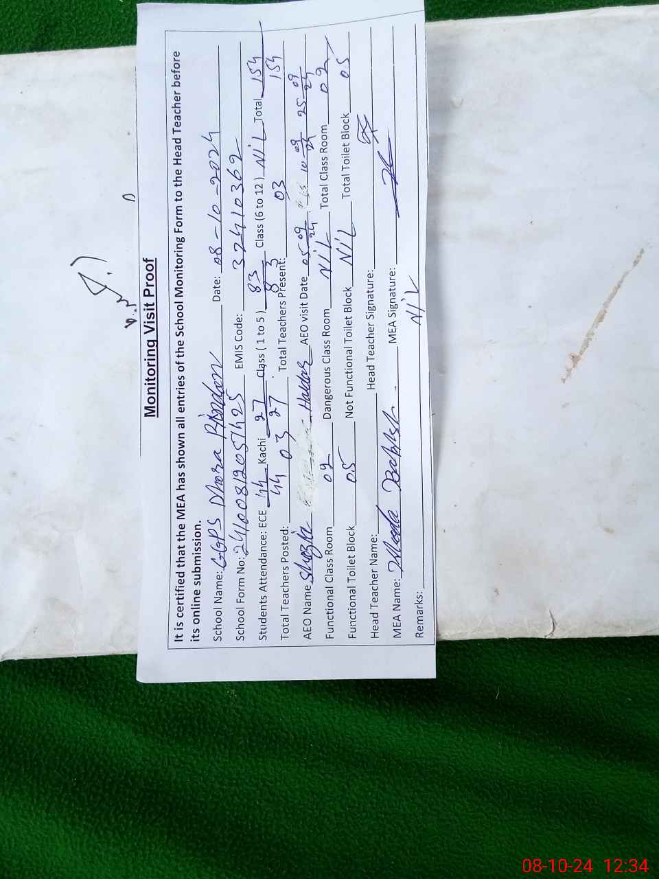 | Attendance Register | Head Teacher | MEA with School | Visit Proof |