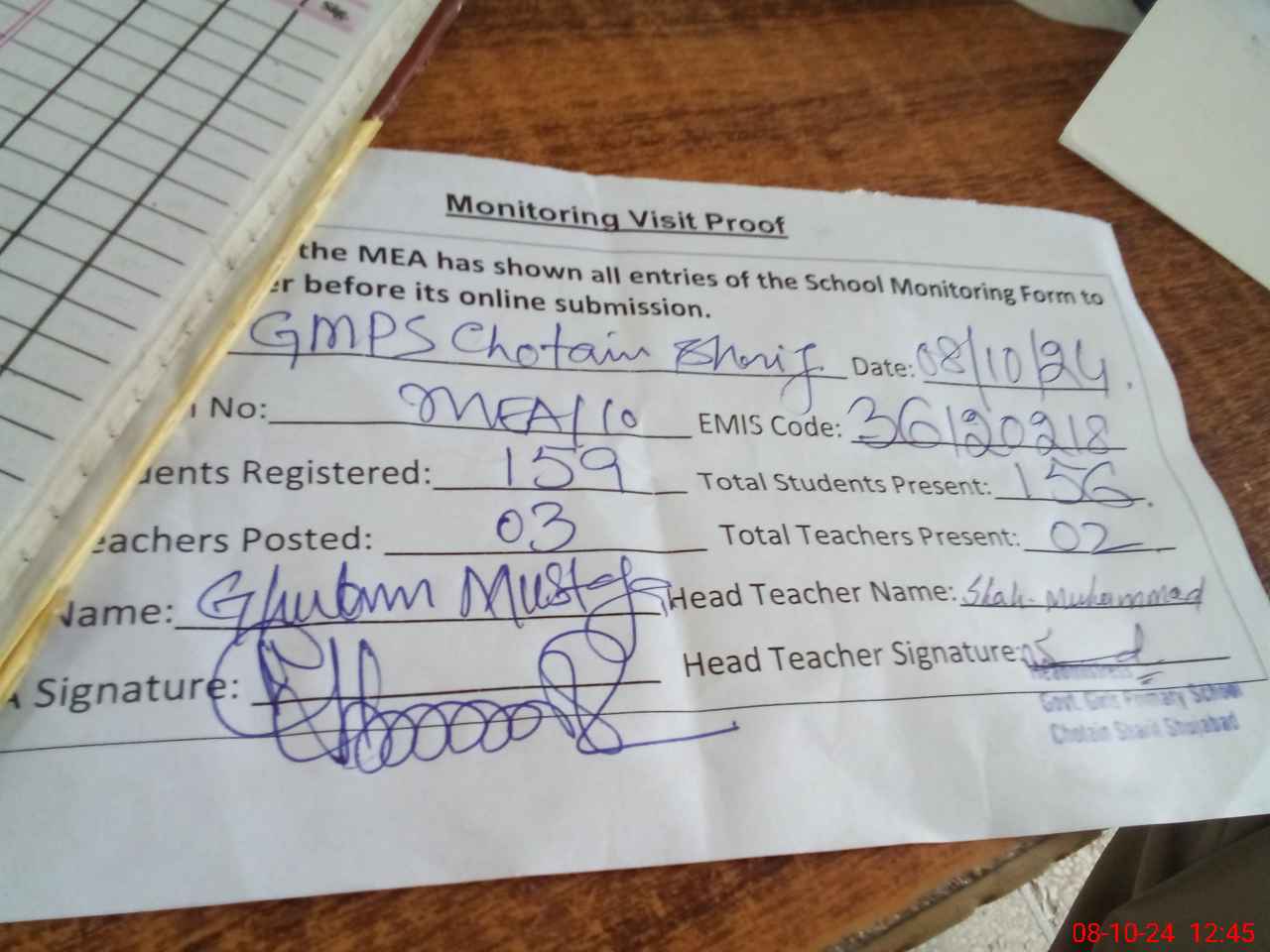 | EMIS Code: 36120218 | Name of School: GMPS CHOTAIN SHARIF | |||