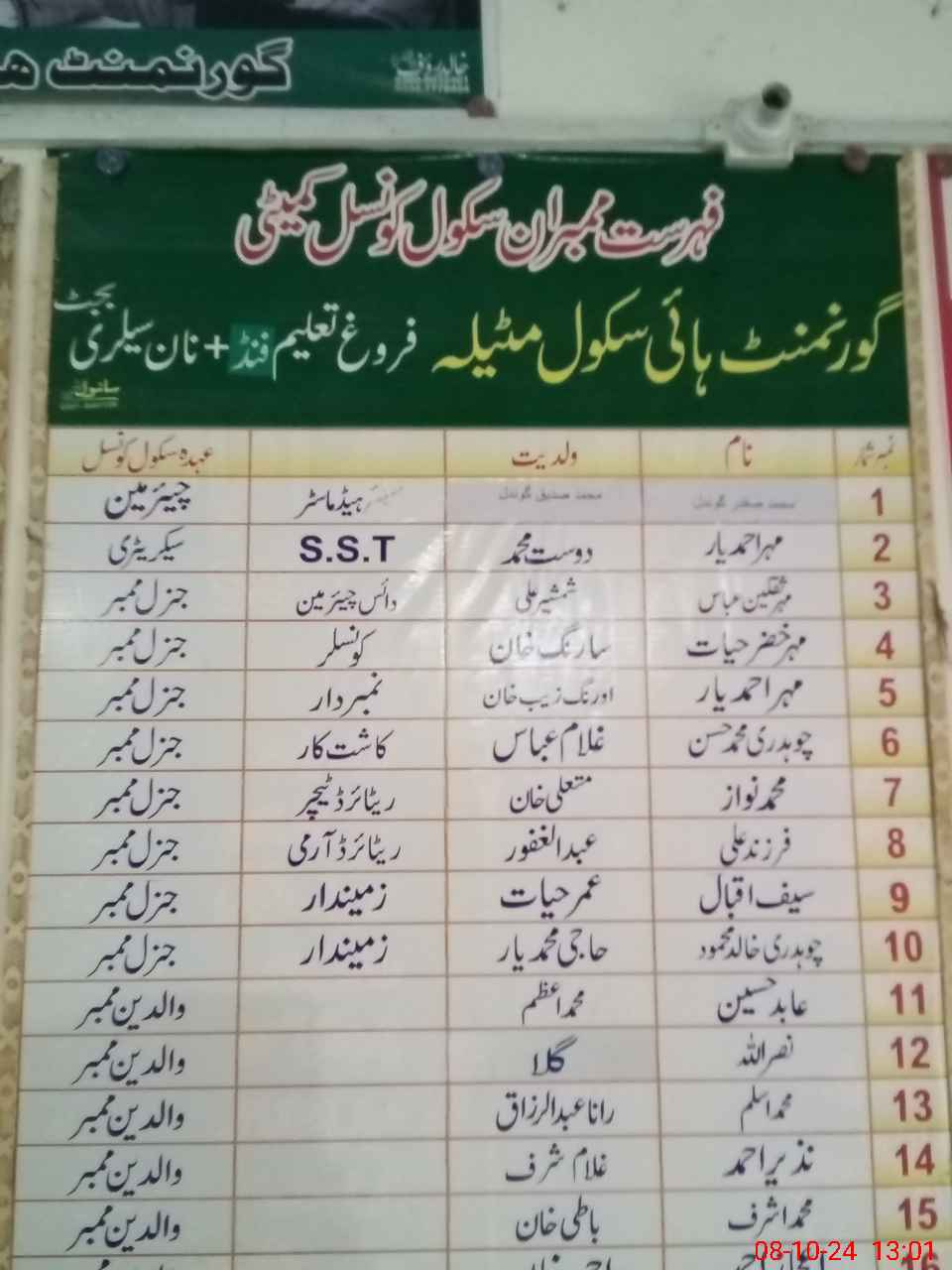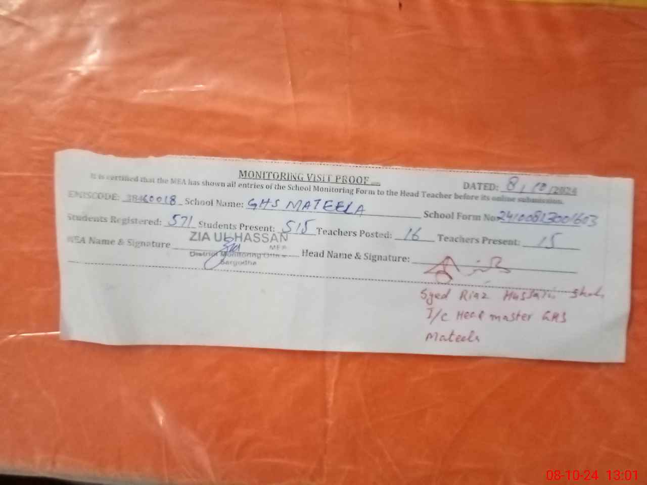 | EMIS Code: 38460018 | Name of School: GHS MATEELA | |||