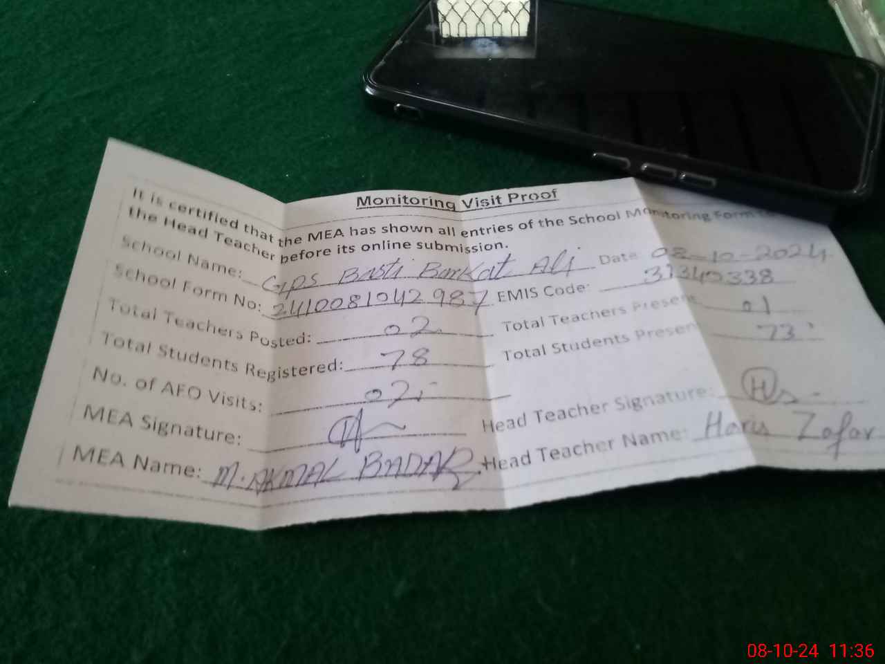 | EMIS Code: 31340338 | Name of School: GPS BASTI BARKAT ALI | |||