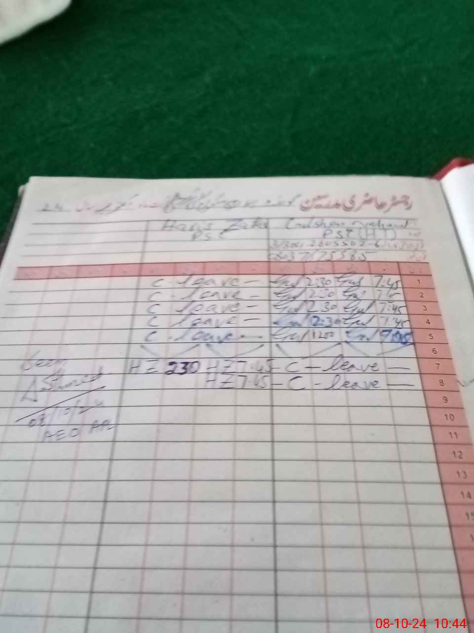| CNIC | Full Name | Designation | R/C | Absence During Last Calender Month |