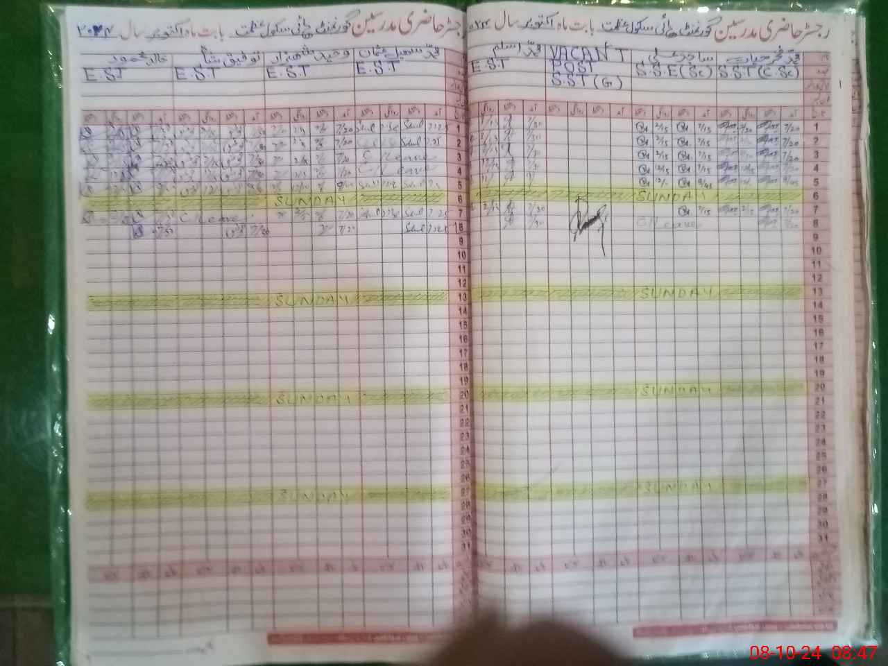 | CNIC | Full Name | Designation | R/C | Absence During Last Calender Month |