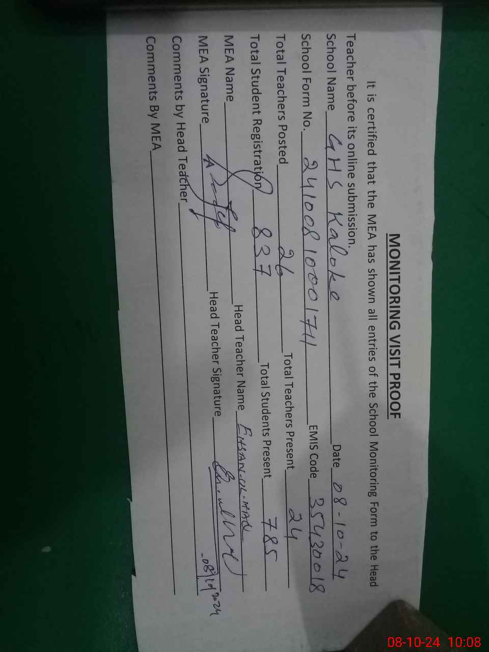 | EMIS Code: 35430018 | Name of School: GHS KALOKE | |||