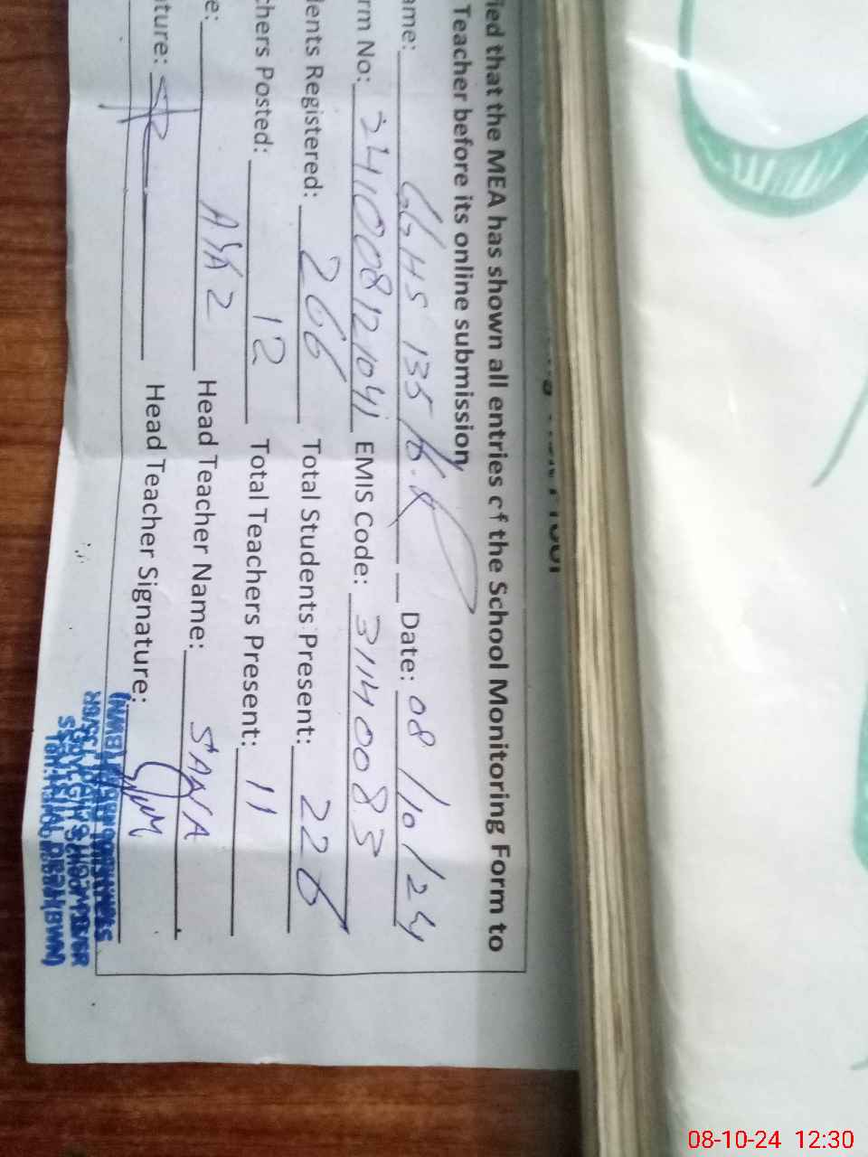 | EMIS Code: 31140083 | Name of School: GGHS CHAK NO 135/6-R | |||