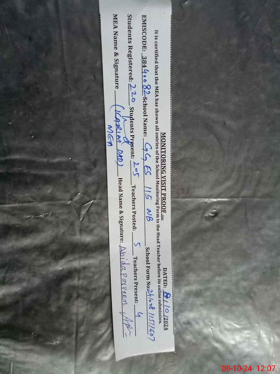 | EMIS Code: 38440082 | Name of School: GGES CHAK NO.115 NB | |||