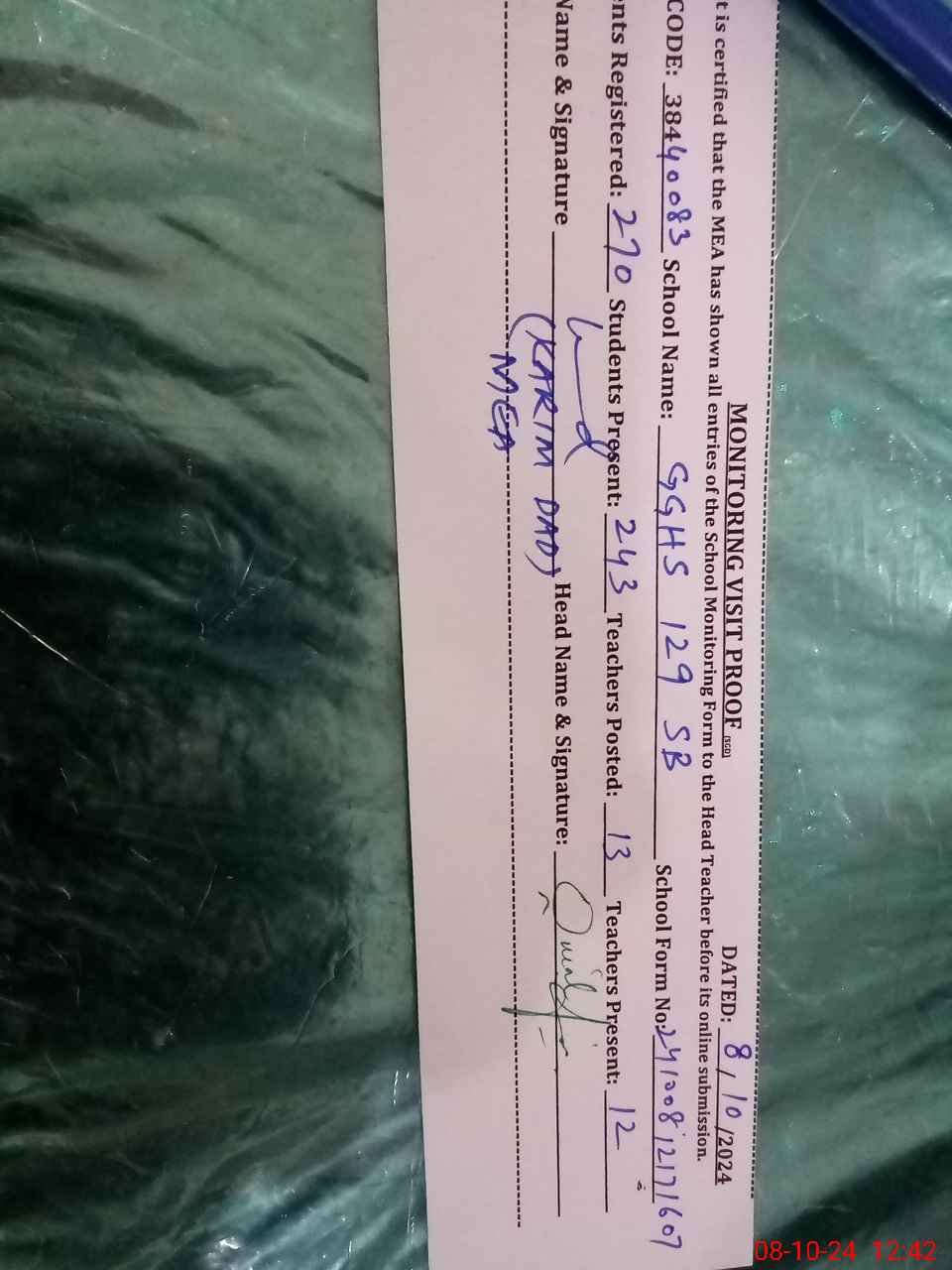 | EMIS Code: 38440083 | Name of School: GGHS CHAK NO 129 SB | |||