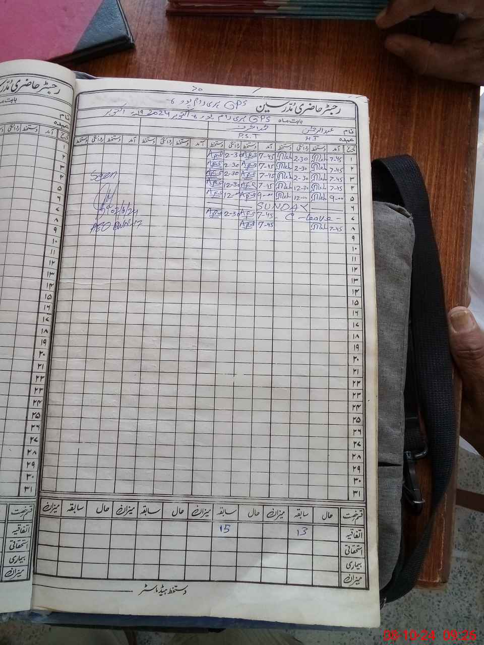 | CNIC | Full Name | Designation | R/C | Absence During Last Calender Month |