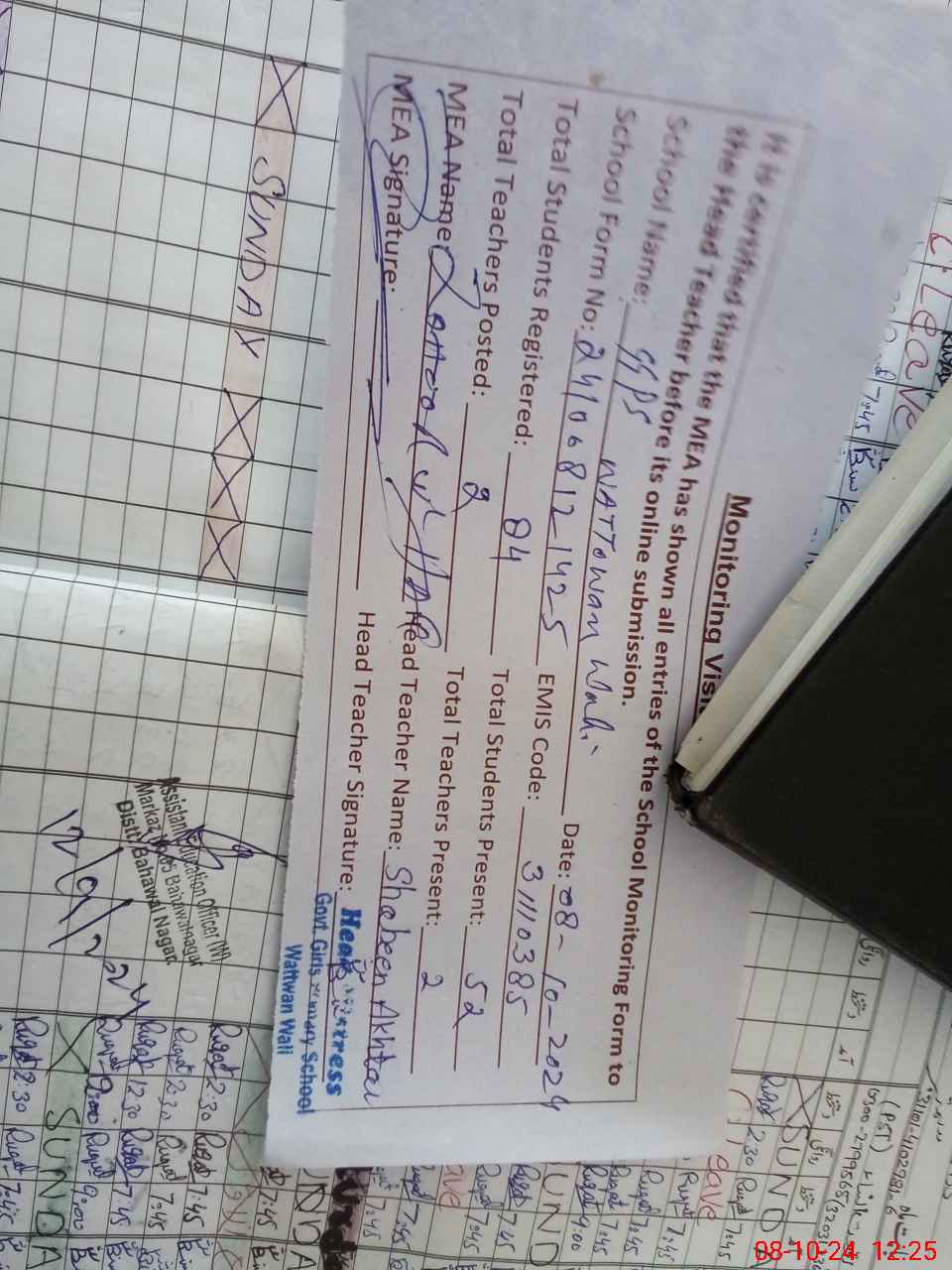 | Attendance Register | Head Teacher | MEA with School | Visit Proof |