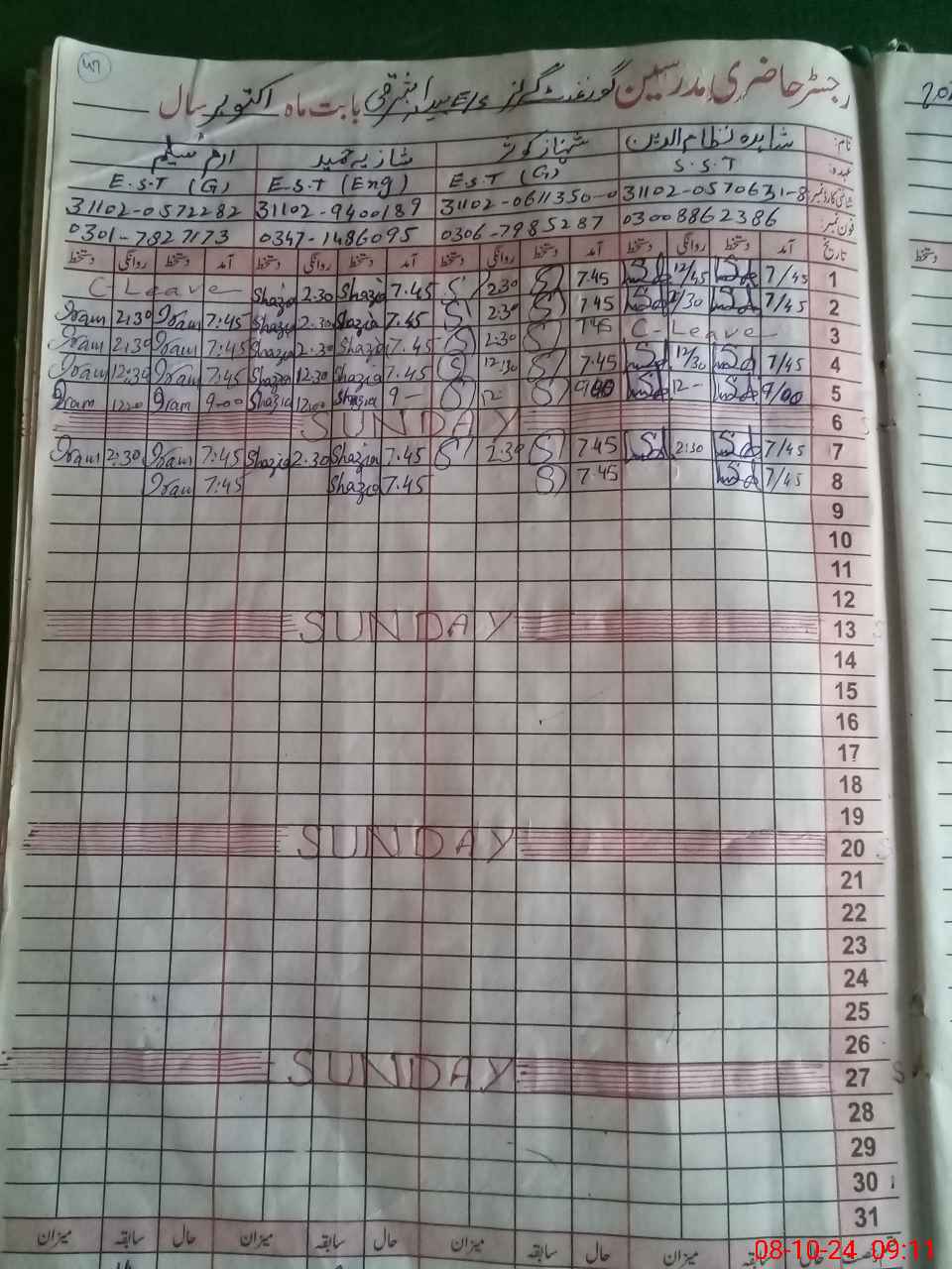| Name: Sh**** Ni**** Designation: (School Headmaster's/Headmistress's) SST GEN Phone/Cell Number: 03**** |