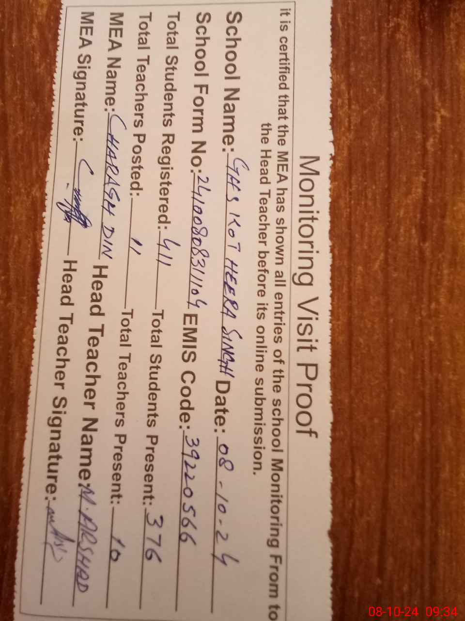 | EMIS Code: 39220566 | Name of School: GHS KOT HEERASINGH P.O SAME | |||