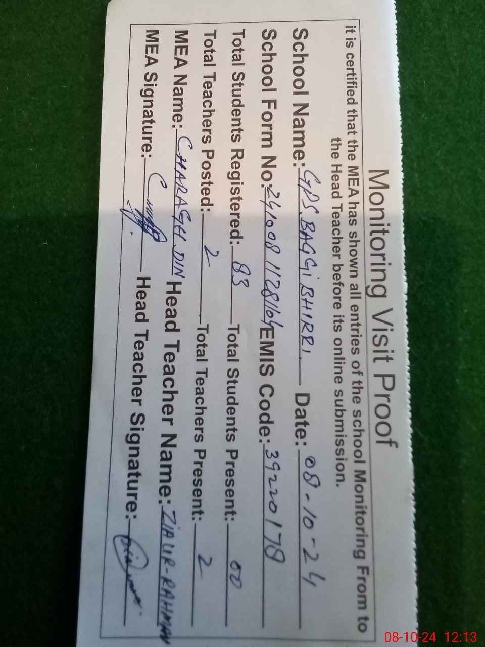 | EMIS Code: 39220178 | Name of School: GPS BAGGI BHIRRI P/O SHAFI ARIF WALA | |||