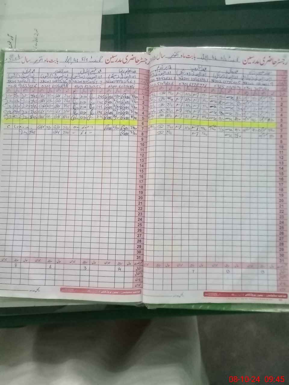 | CNIC | Full Name | Designation | R/C | Absence during last cal. month |