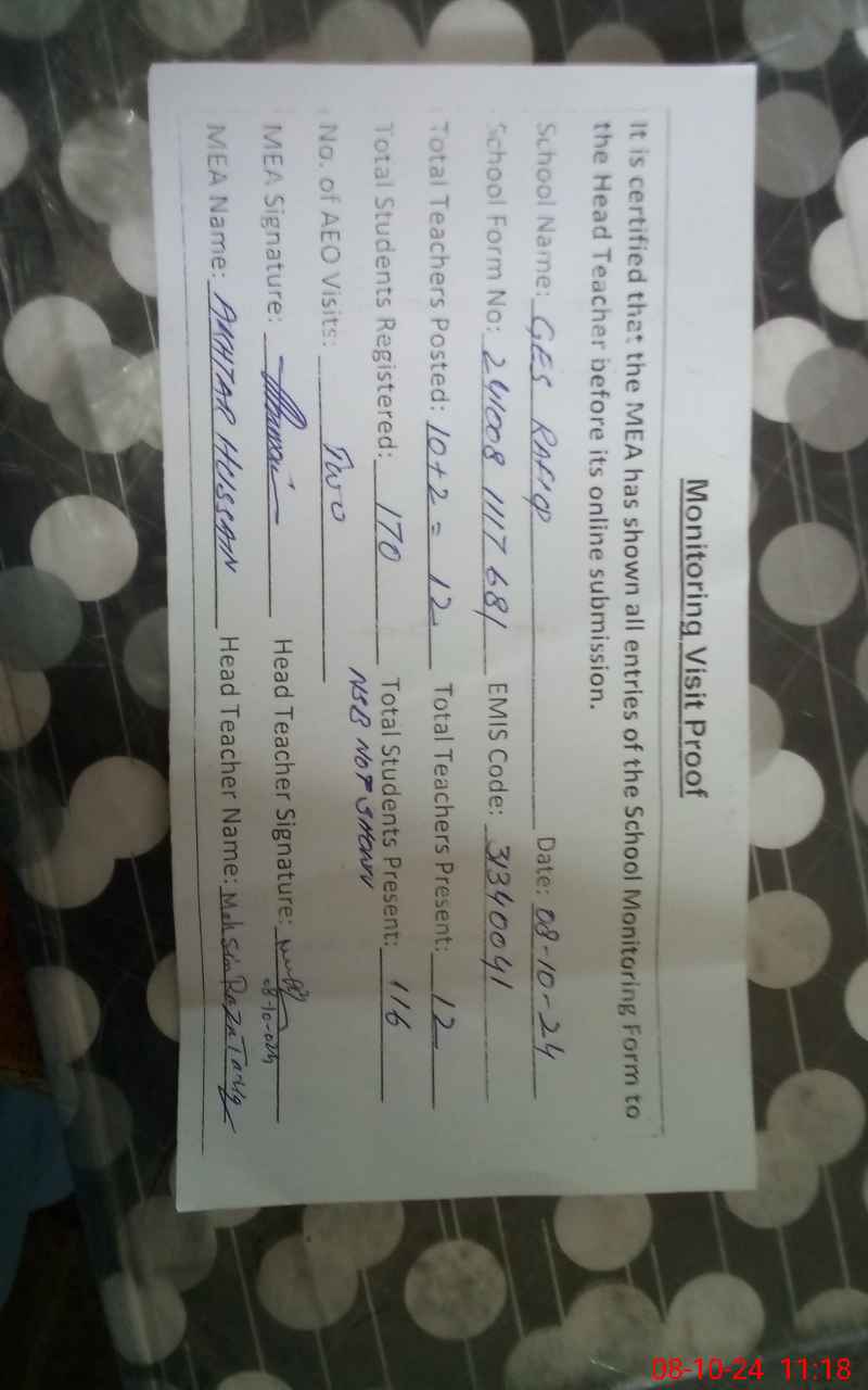 | EMIS Code: 31340041 | Name of School: GES RAFIQUE | |||