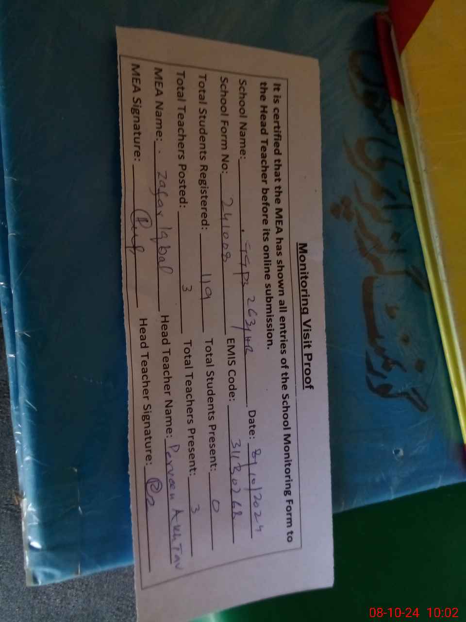 | Certified that this School was Inspected by the Undersigned MEA/DMO Today and the Information Stated Above is as Per Record. | |||||