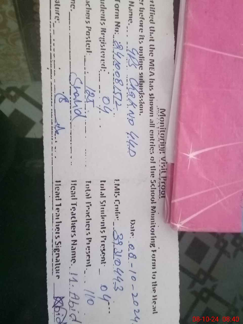 | Name: Mu**** Ab**** Designation: (School Headmaster's/Headmistress's) PST Phone/Cell Number: 03**** |