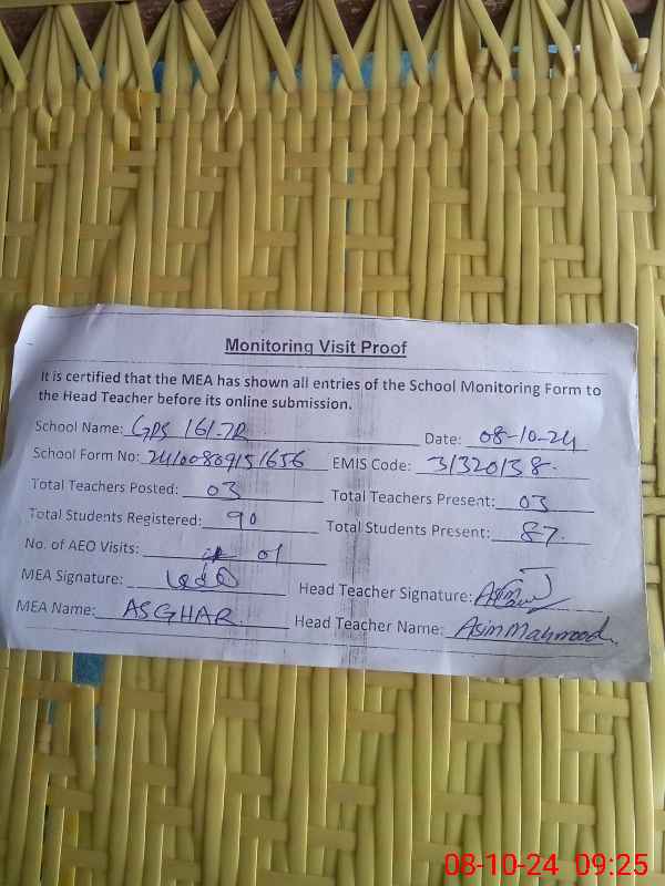 | Certified that this School was Inspected by the Undersigned MEA/DMO Today and the Information Stated Above is as Per Record. | |||||