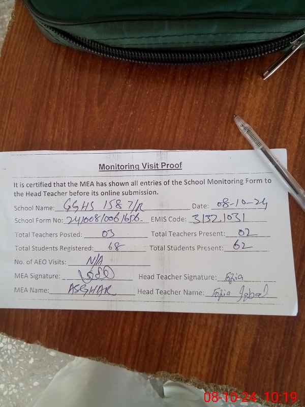 | EMIS Code: 31321031 | Name of School: GGHS 158/7-R | |||