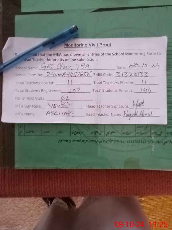 | Attendance Register | Head Teacher | MEA with School | Visit Proof |