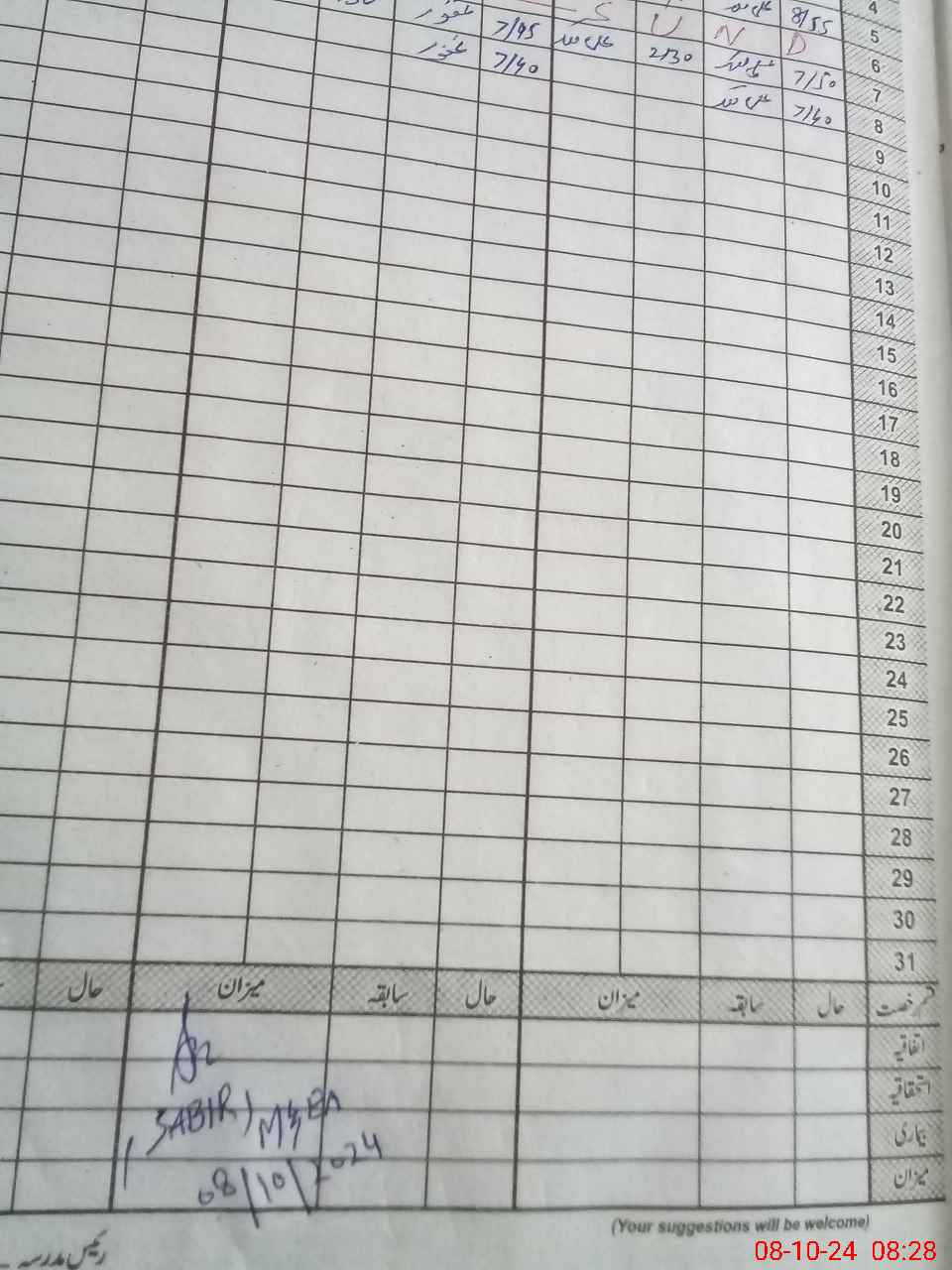 | CNIC | Full Name | Designation | R/C | Absence During Last Calender Month |