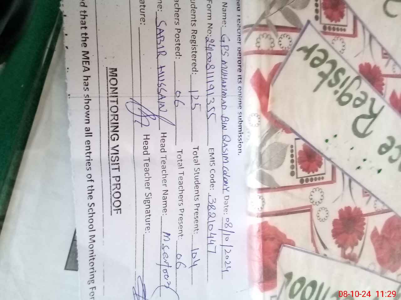 | EMIS Code: 38210447 | Name of School: GPS MUHAMMAD BIN QASIM COLONY | |||