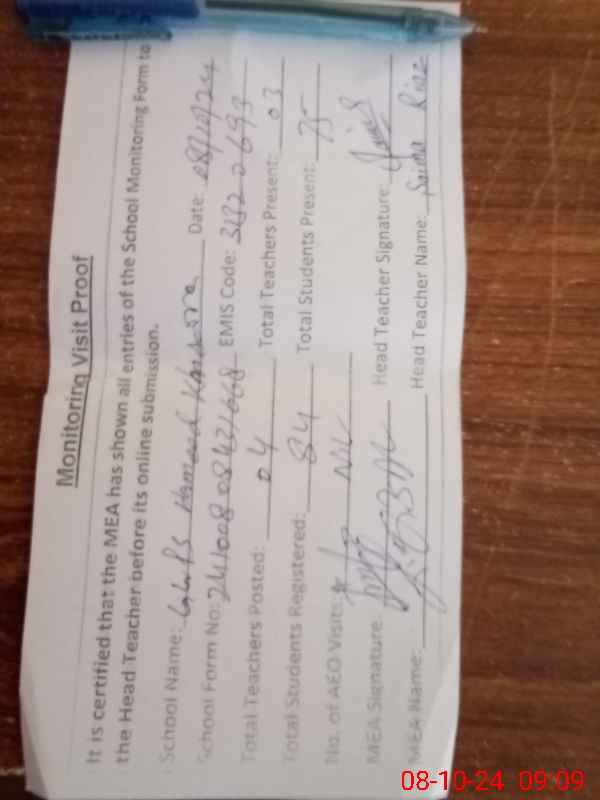 | Certified that this School was Inspected by the Undersigned MEA/DMO Today and the Information Stated Above is as Per Record. | |||||