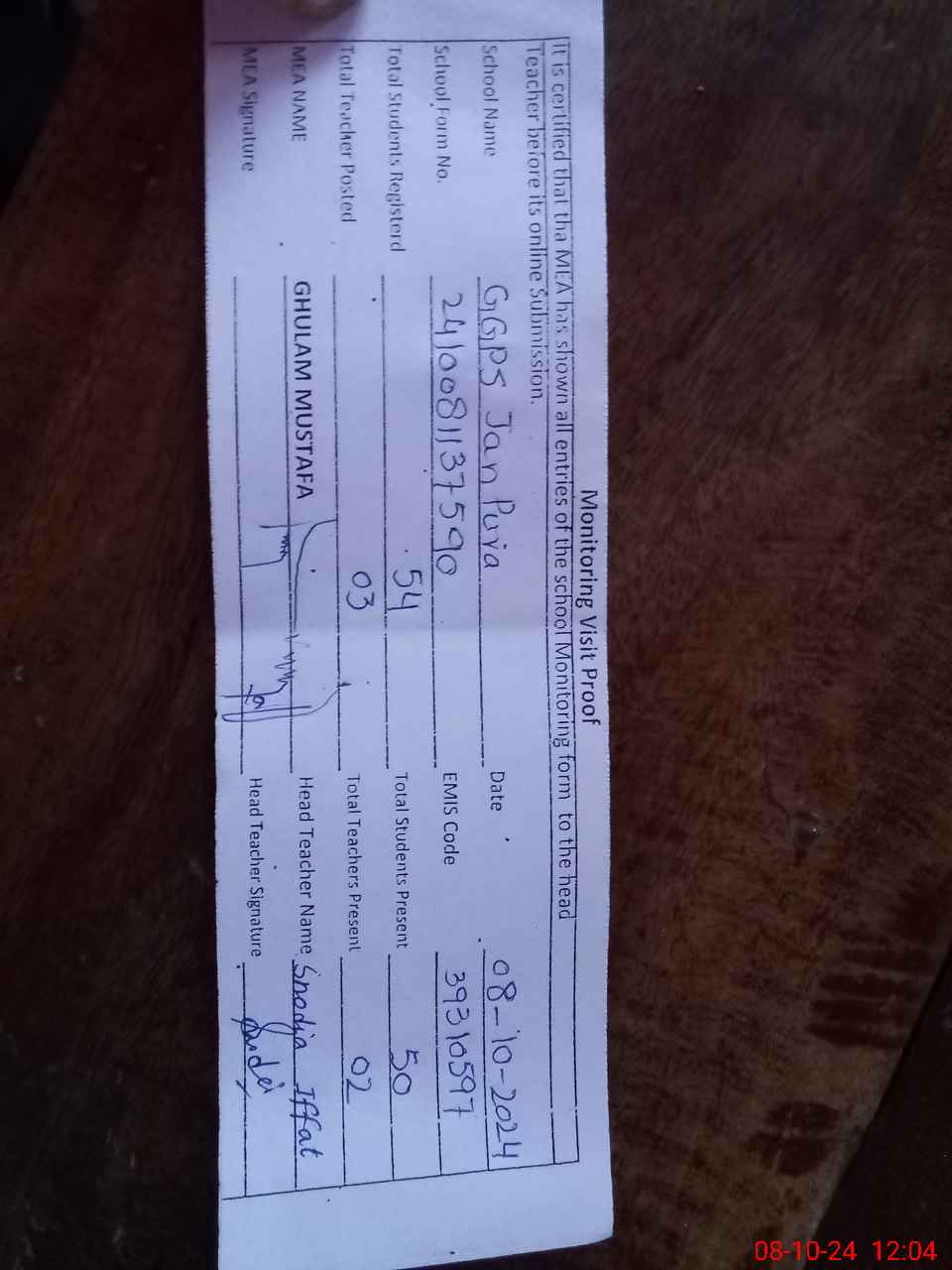 | EMIS Code: 39310597 | Name of School: GGPS JAN PURA | |||