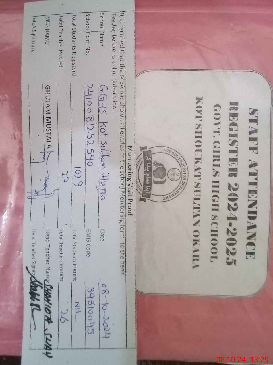 | EMIS Code: 39310045 | Name of School: GGHS KOT SHOUKAT SULTAN | |||