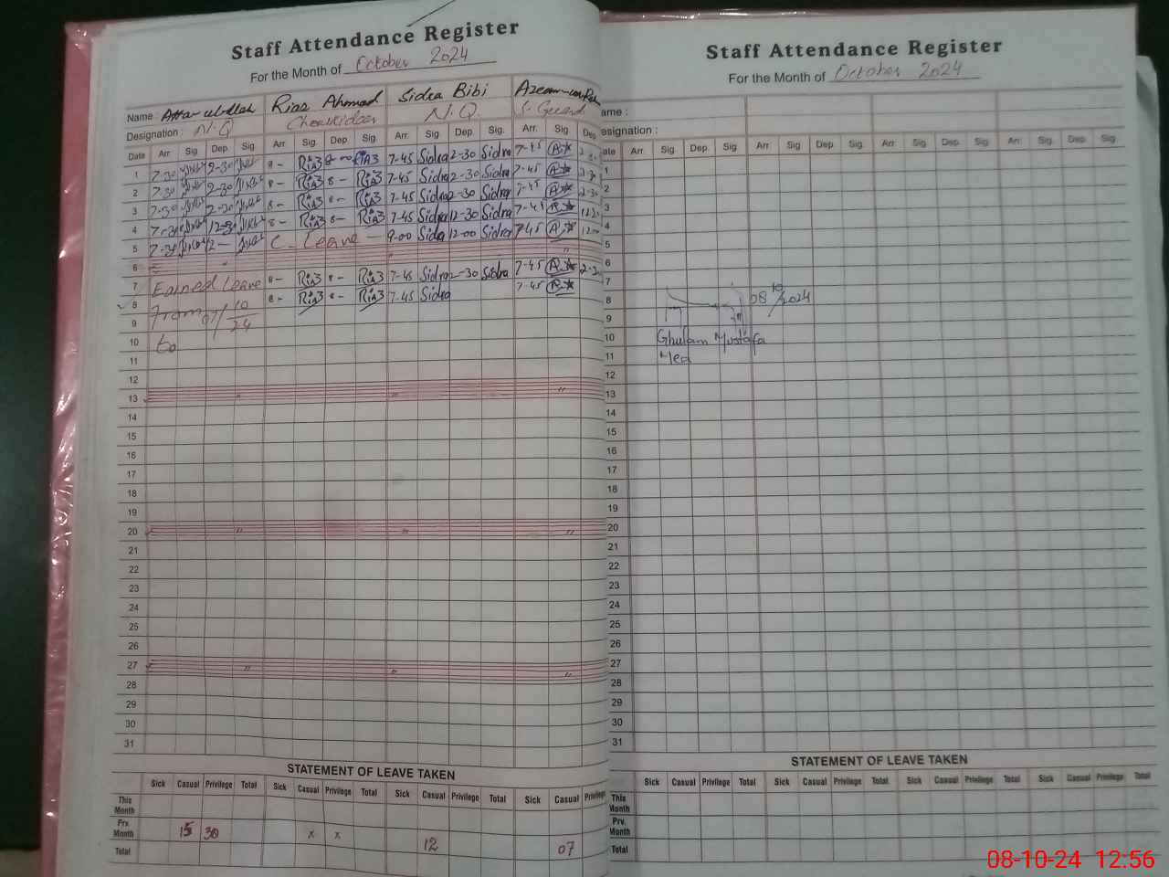 | Total no. of Classrooms: 24 No. of Classrooms Used for Teaching: 19 No. of Classrooms Storing Old Furniture, FTBs, etc: 0Comments if Any: Nominal roll for online attendance found contrary to current students records Head teacher stated that all enrolled students provided with free taxtbooks accordingly Today as on 08 October 2024 the school administration are observing strike and found |
