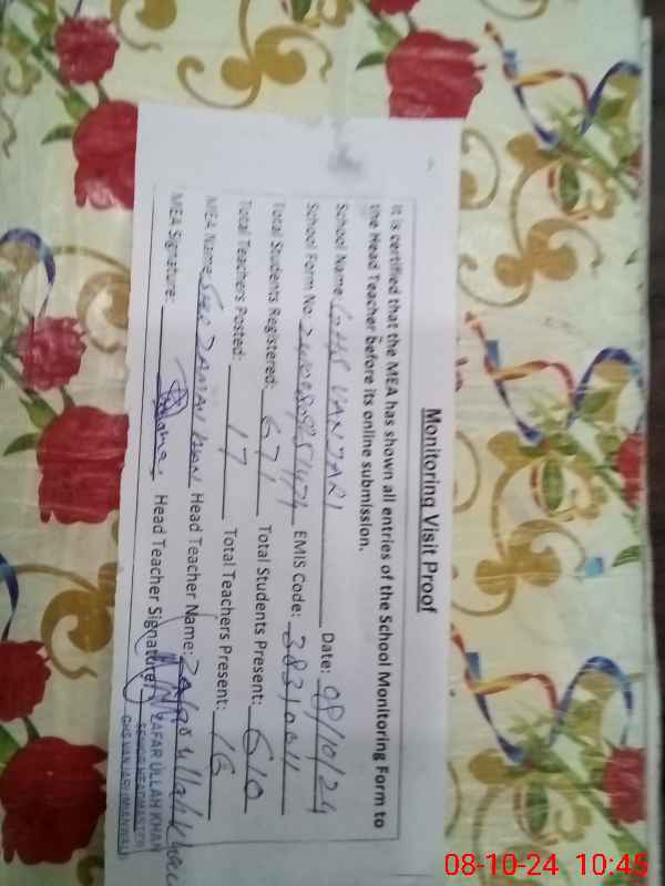 | Certified that this School was Inspected by the Undersigned MEA/DMO Today and the Information Stated Above is as Per Record. | |||||