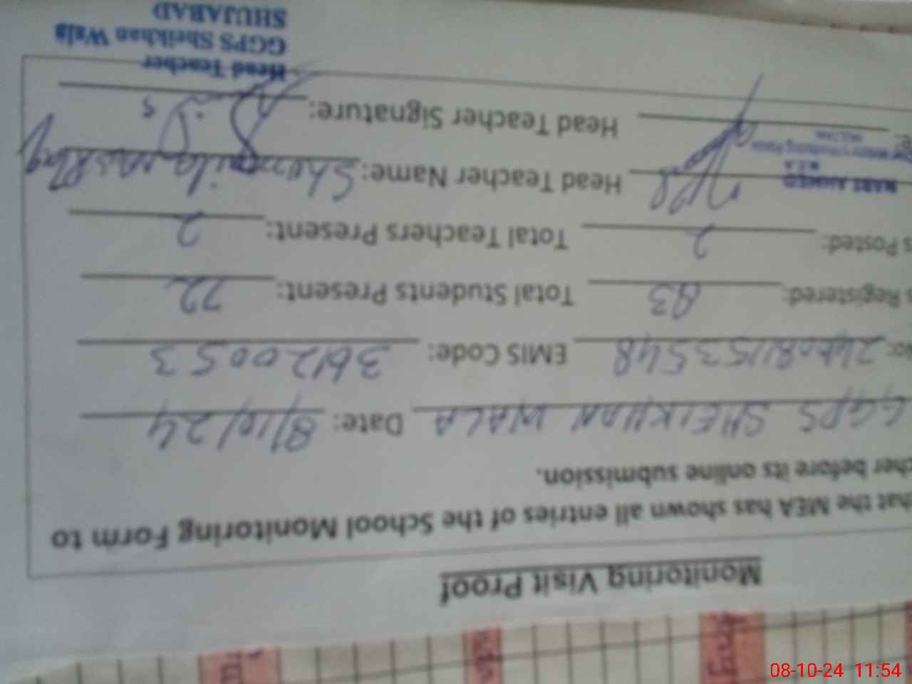 | Name: Sh**** Mu**** Designation: (School Headmaster's/Headmistress's) PST Phone/Cell Number: 03**** |