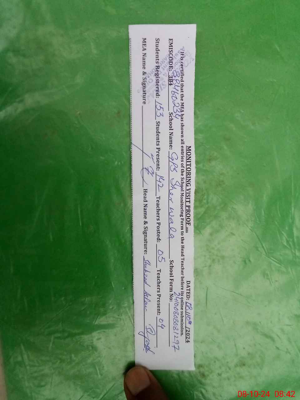 | EMIS Code: 38460234 | Name of School: GPS SHER WALA | |||
