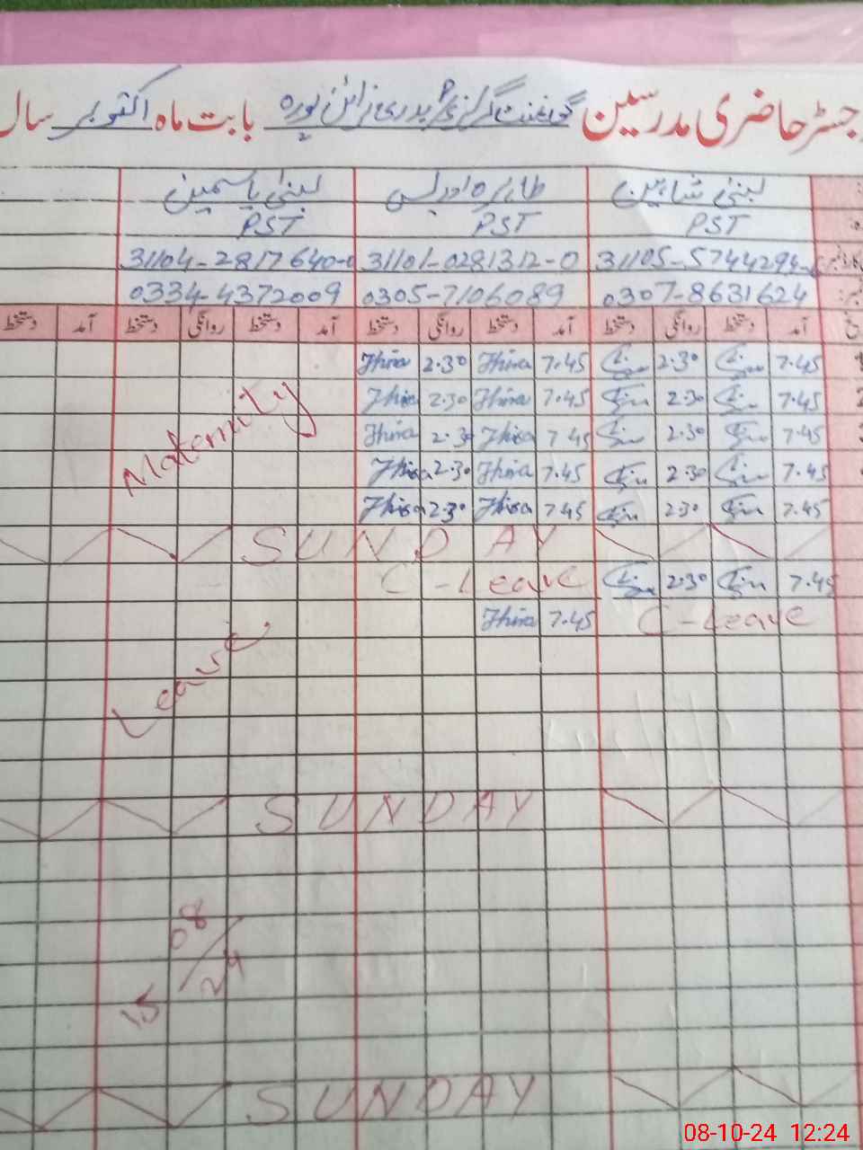 | Name: TA**** ID**** Designation: (School Headmaster's/Headmistress's) PST Phone/Cell Number: 03**** |