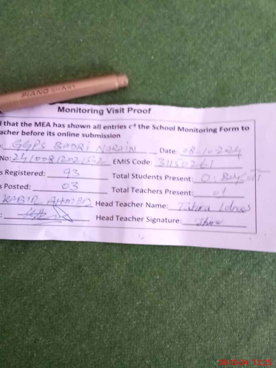 | EMIS Code: 31150261 | Name of School: GGPS BADRI NARAIN PURA | |||