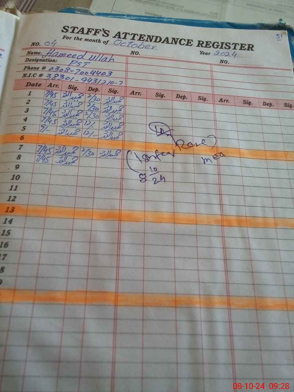 | Name: AM**** UL**** KH**** Designation: (School Headmaster's/Headmistress's) PST/PTC/JV Phone/Cell Number: 03**** |
