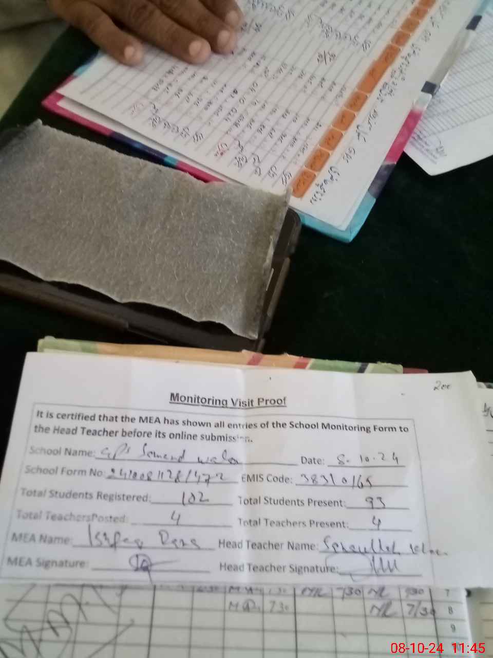 | EMIS Code: 38310165 | Name of School: GPS SAMAND WALA PO KAMAR MUSHANI ISA KHEL | |||