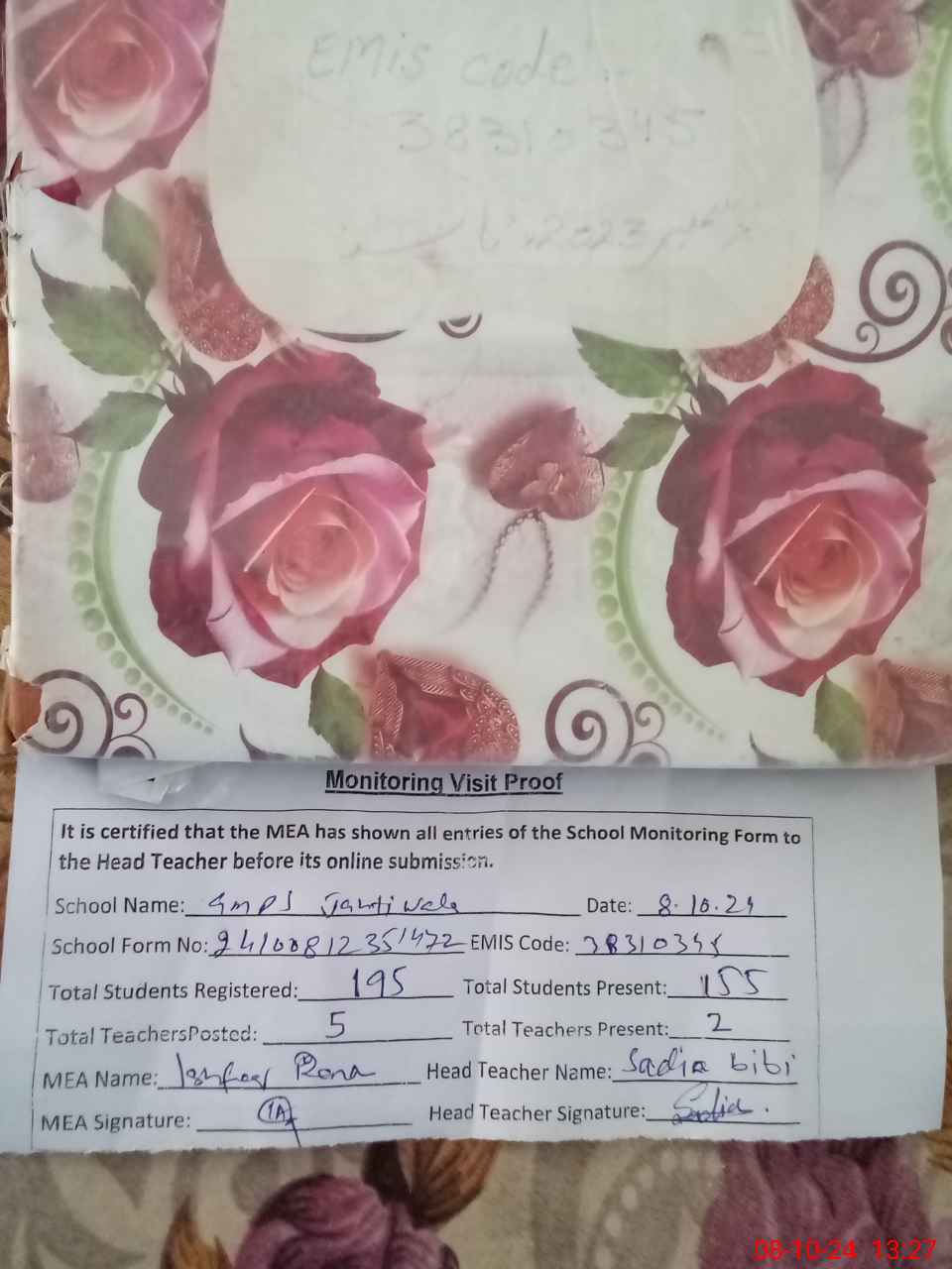 | Attendance Register | Head Teacher | MEA with School | Visit Proof |