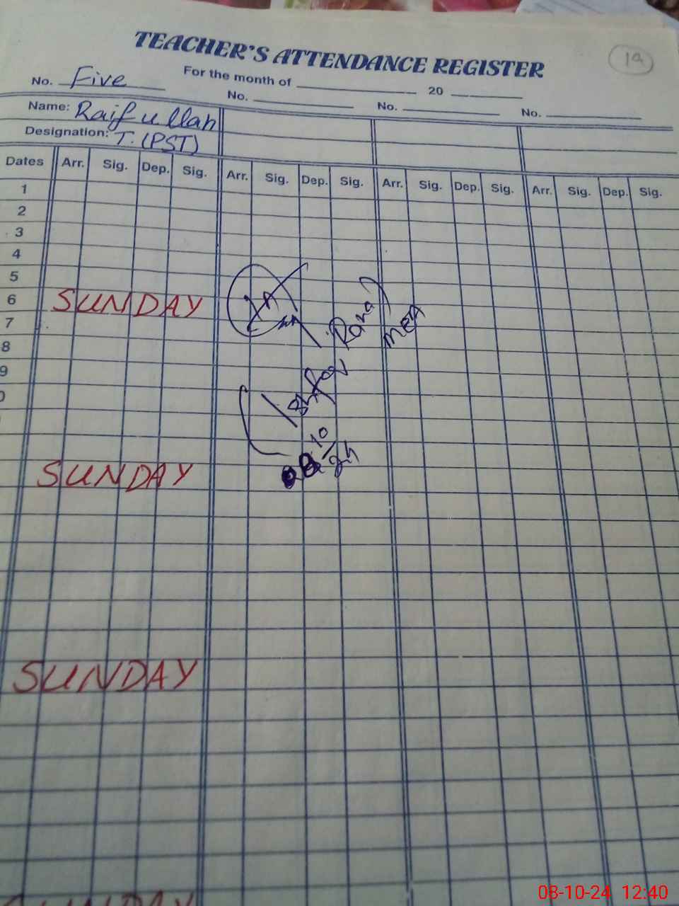 | Name: Sa**** Qa**** Designation: (School Headmaster's/Headmistress's) PST Phone/Cell Number: 03**** |