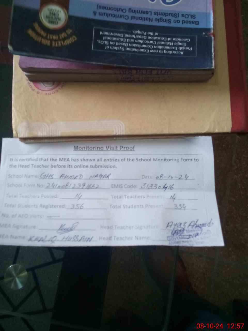 | EMIS Code: 31330416 | Name of School: GHS AHMED NAGAR | |||