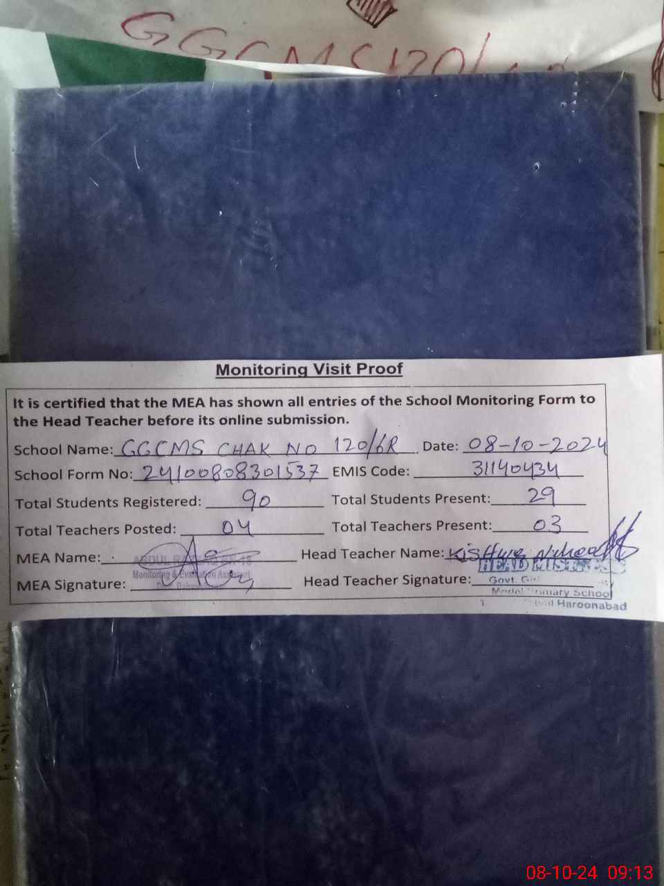 | EMIS Code: 31140434 | Name of School: GGCMS CHAK NO. 120/6-R | |||