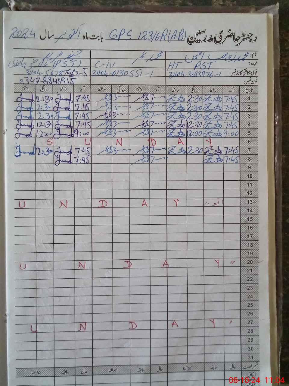 | Name: Mu**** Zo**** Am**** Designation: (School Headmaster's/Headmistress's) PST Phone/Cell Number: 03**** |