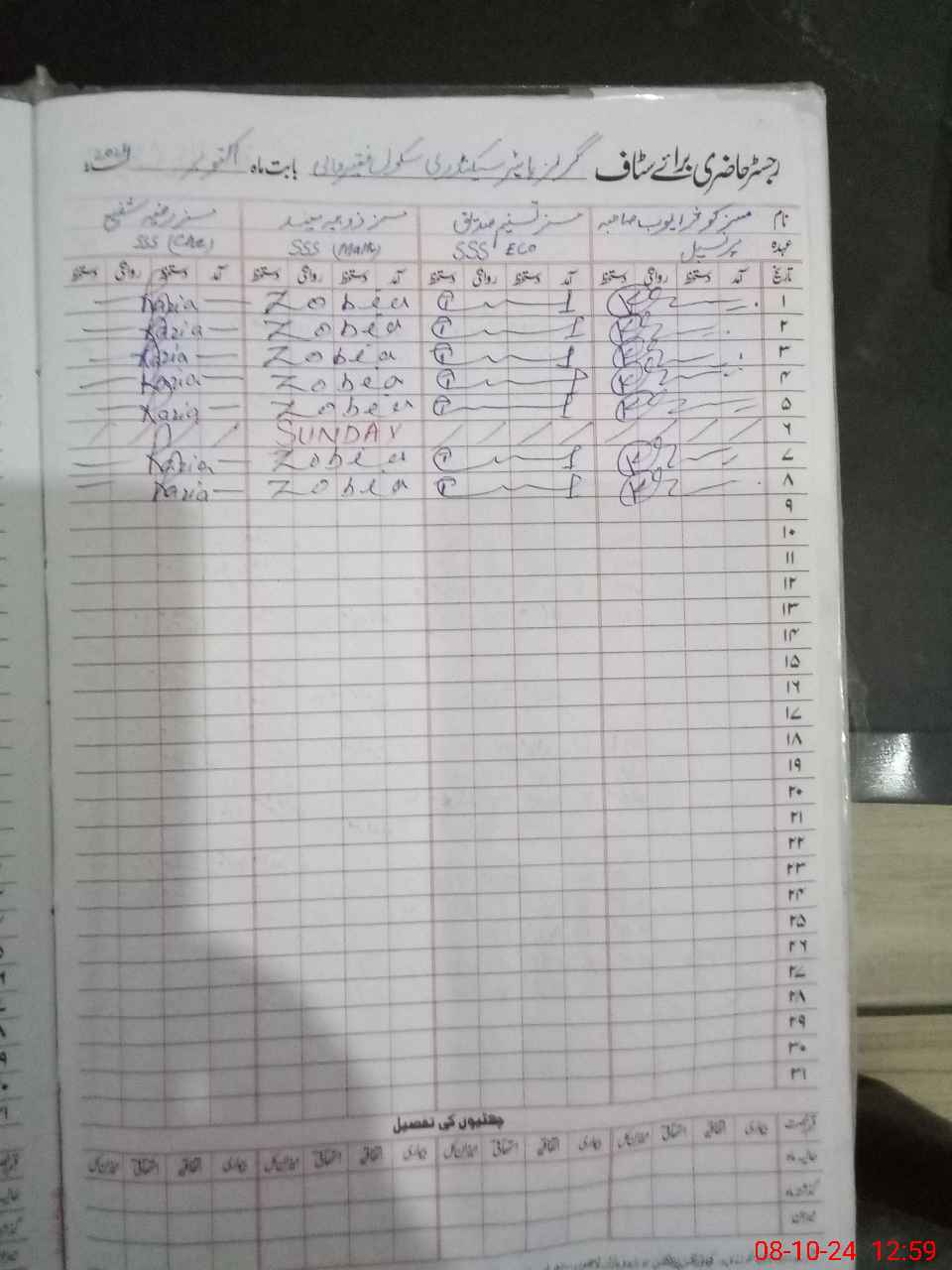 | CNIC | Full Name | Designation | R/C | Absence During Last Calender Month |