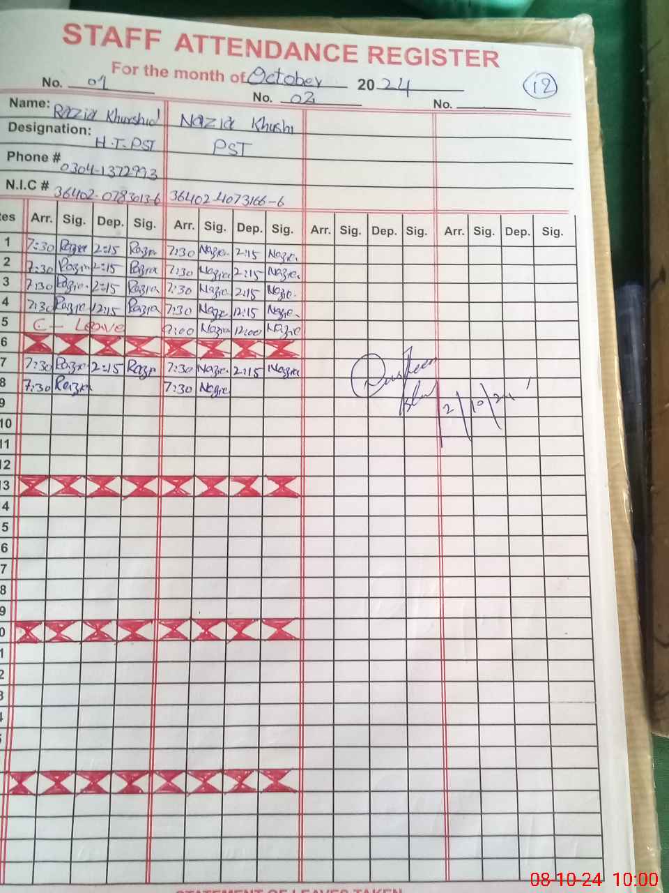 | Name: Na**** Kh**** Designation: (School Headmaster's/Headmistress's) PST Phone/Cell Number: 03**** |