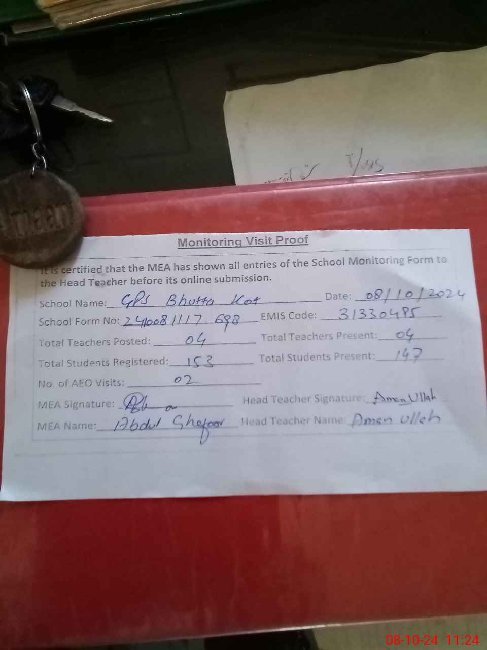 | EMIS Code: 31330495 | Name of School: GPS BHUTTA KOT | |||