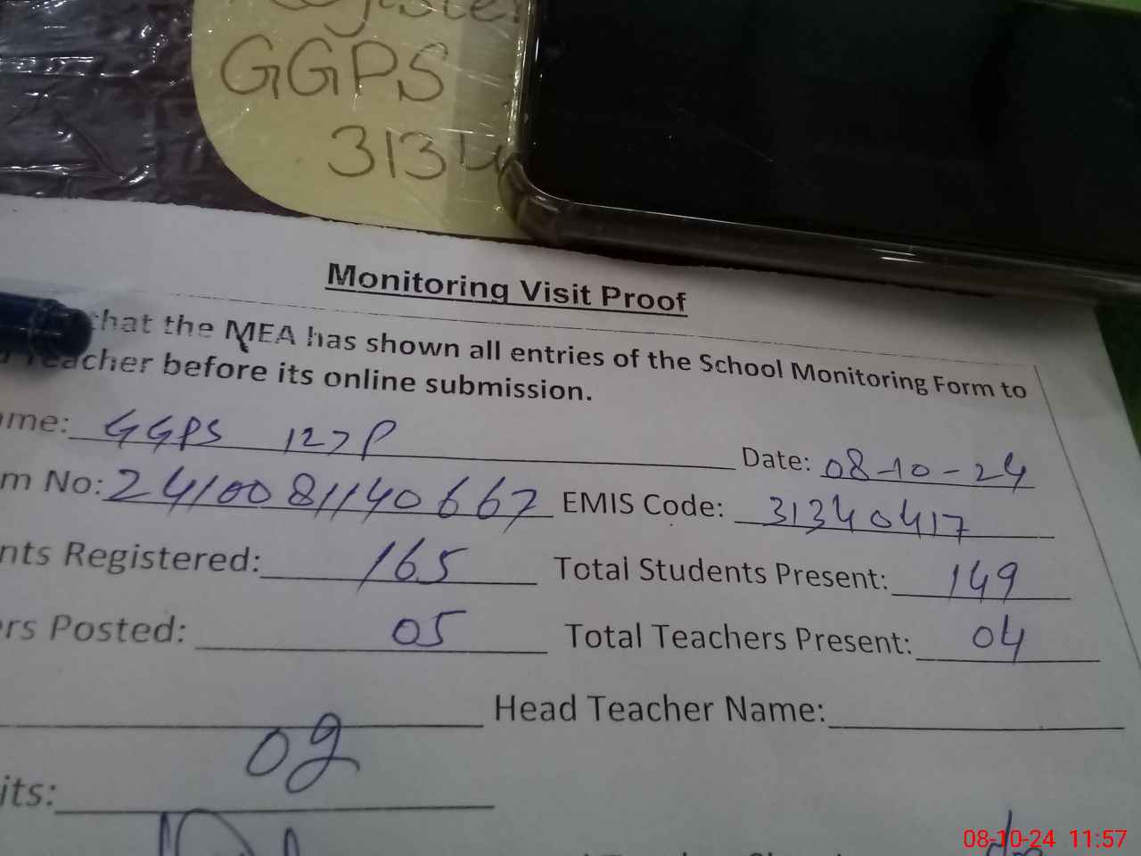 | Attendance Register | Head Teacher | MEA with School | Visit Proof |