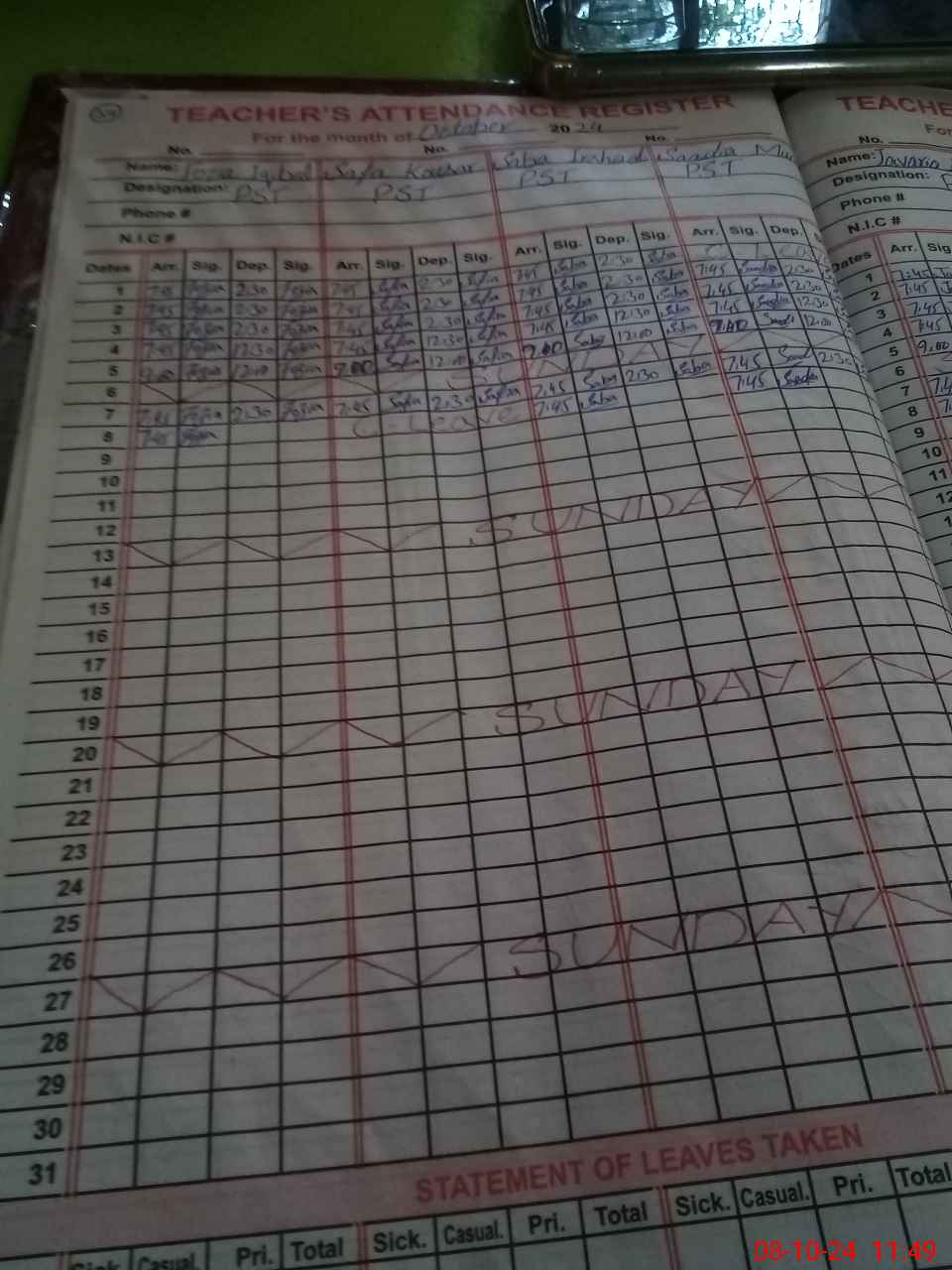 | 31**** | Sa**** Ka**** | PST | Regular | 3 | 0 | 0 | 0 | 0 | 0 | 0 | 0 | 3 | Casual |