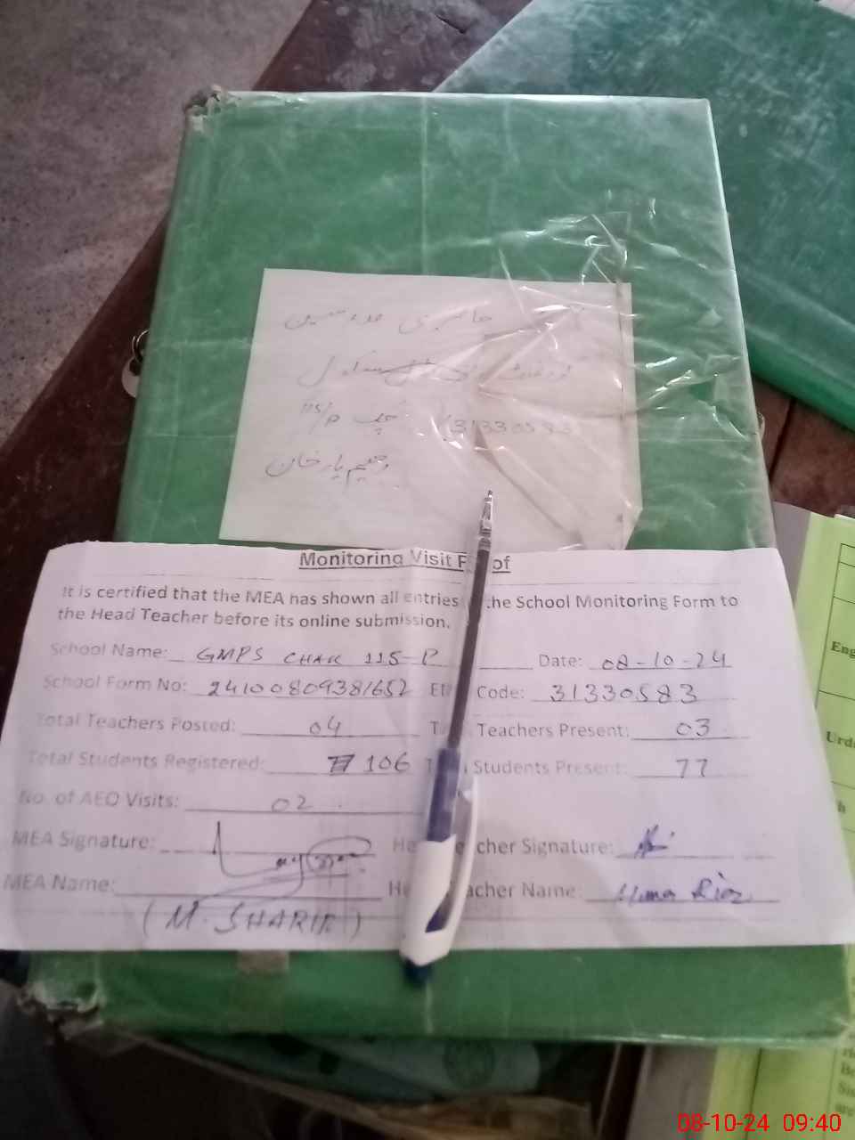 | Attendance Register | Head Teacher | MEA with School | Visit Proof |