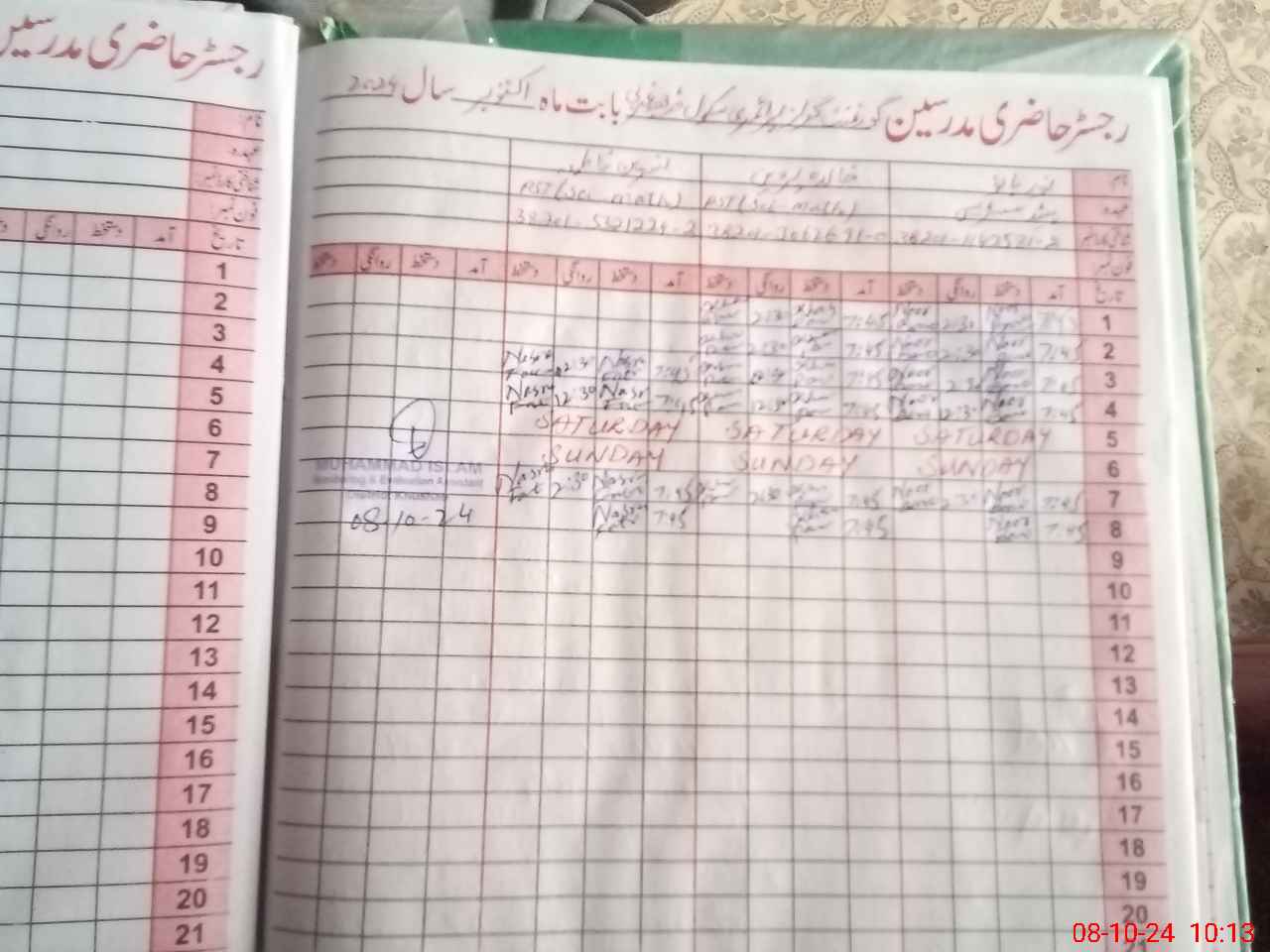| Name: No**** Ba**** Designation: (School Headmaster's/Headmistress's) PST Phone/Cell Number: 03**** |