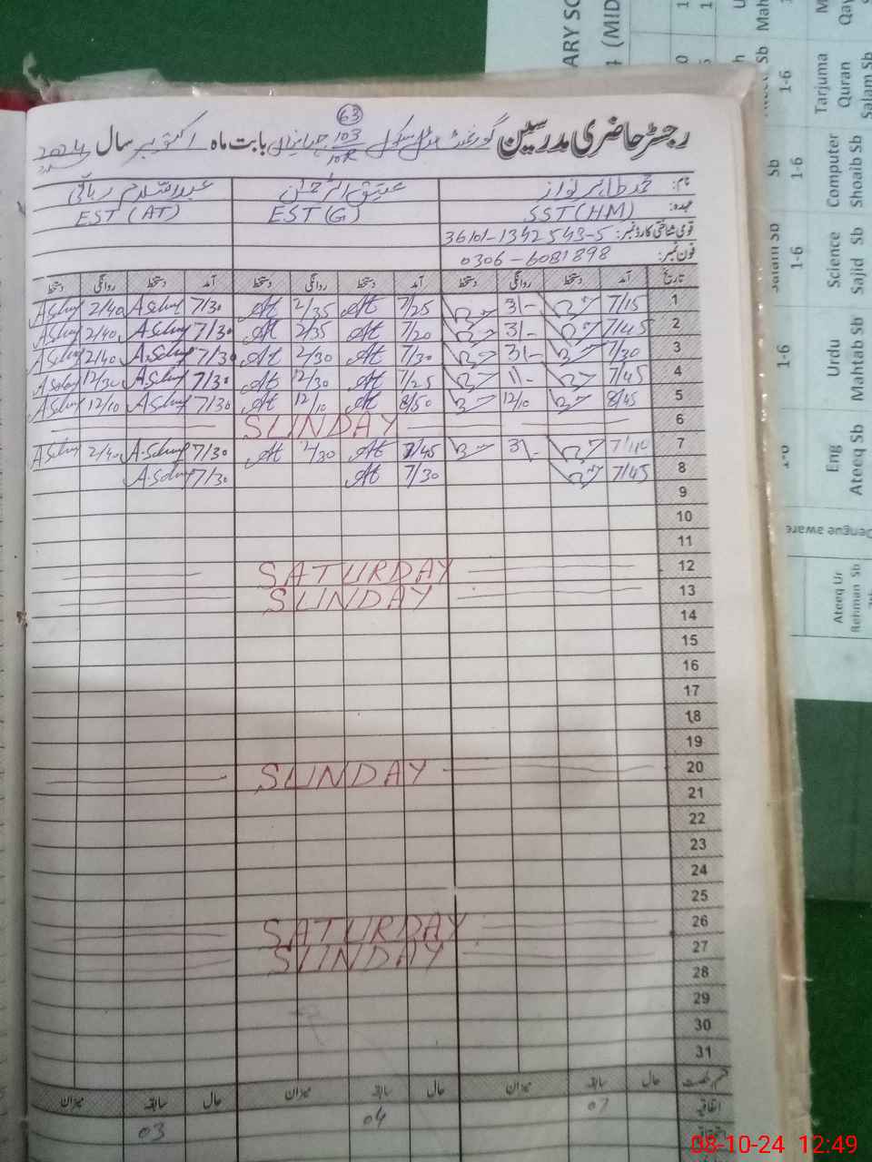 | Name: MTa**** Na**** Designation: (School Headmaster's/Headmistress's) SST GENERAL Phone/Cell Number: 03**** |